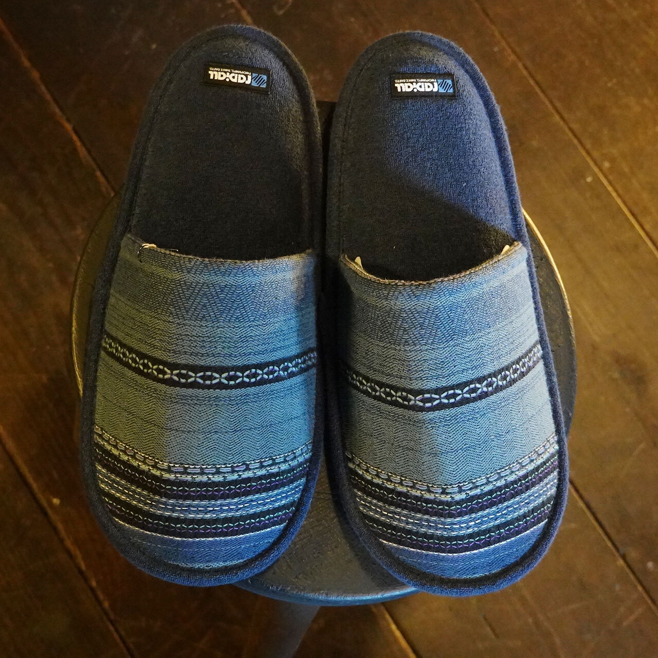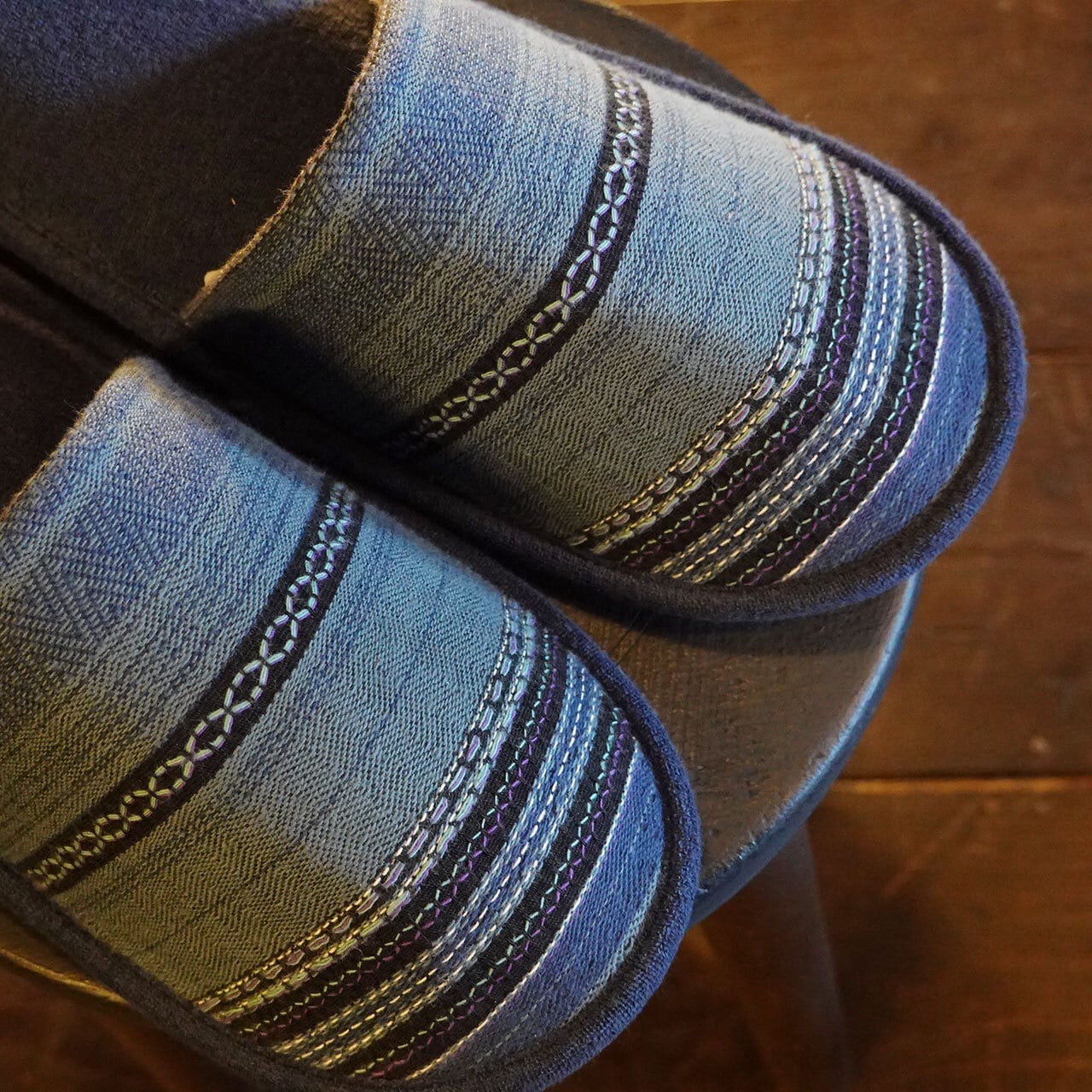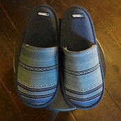 メキシカンジャガードボーダー生地を使用したルームスリッパ。